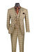 Khaki Modern Fit Windowpane Peak Lapel 3 Piece Suit