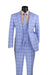Modern Fit Windowpane Suit 3 Piece with U-Neck Vest in Light Blue — USA Men's Outlet Skip to content