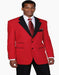 Mens 2 Button Classic Fit Pleated Dress Pants Contrast Collar Tuxedo in Red
