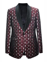 mensusa$139.00Original price $139.00 - Original price $139.00Original price$139.00 - $139.00Current price $139.00| /One Button Single Breasted Shawl Lapel Dot Pattern One Chest Pocket Flap Two Pockets Color: Burgundy SKU#MO662