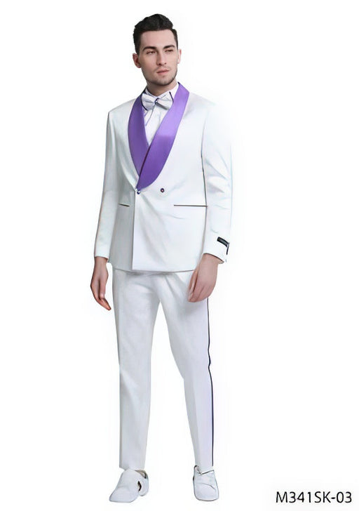 White and Purple Tuxedo Suit - Prom Suit - Prom Wedding Suit