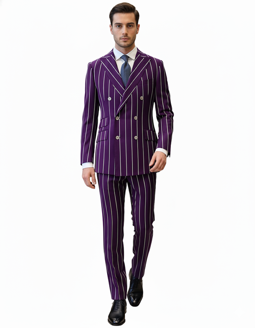 Men's Tuxedo USA$114.00Original price $114.00 - Original price $114.00Original price$114.00 - $114.00Current price $114.00| /Mens Double Breasted Gangster Bold Purple Pinstripe Suit This gangster pinstripe suit is the perfect attire for any wedding, prom, 1920's or 1930'...