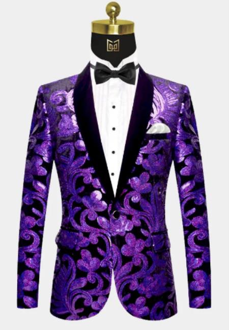 mensusa$199.00Original price $199.00 - Original price $199.00Original price$199.00 - $199.00Current price $199.00| /Men's Purple Shiny Sequin Paisley 1 Button Blazer Dinner Jacket Sport Coat Jacket Sharkskin Flashy Stage Available In Peak Lapel Color: Purple SKU#...