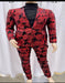 Make a bold fashion statement with this Men’s Red and Black Floral Tuxedo Suit, a striking ensemble tailored for men who appreciate unique and luxurious formalwear. Featuring an intricate red floral embroidery over a deep black velvet-textured base, this slim-fit two-piece suit brings together bold color and refined design.