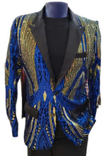 Men's Sequin Tuxedo Jacket ~ Flashy Shiny Blazer Sport Coat Dinner Blazer Royal and Black