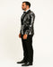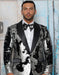 Men's Black and Silver Gray Sequin Tuxedo Blazer With Black Pants