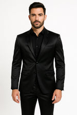 Black Satin Flex Two-Piece Suit – Slim Fit Sport Coat and Matching Pants