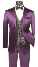 Men's Shiny Purple Slim Fit Suit No Vest - Jacket and Pants