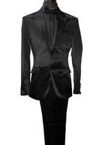 Mens Shiny Blazer - Black Sateen Vested Suit