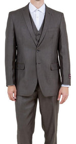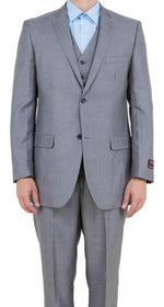 Mens Light Gray Sharkskin 3 Piece Regular Fit Side Vent Suit
