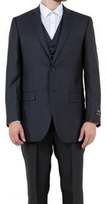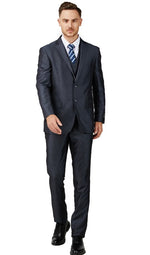 Mens Steel Navy 3 Piece Sharkskin Suit Single Breasted Notch Lapel Regular Fit