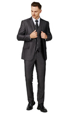 Mens Shiny Charcoal Notched Lapel Suit Slim Fit