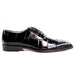 A classic Belvedere design dress shoe. It features a combination of genuine eel and ostrich leg exotic skins. The style is a cap toe with a 4 eyelet closure and leather soles.