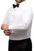 The "Stretch" White Laydown Tuxedo Shirt by Ted Stanford, crafted from a 4-way stretch fabric, is both light weight and comfortable. The laydown collar is a traditional design that pairs perfectly with either a bow tie or necktie. The shirt cuffs are brilliantly designed as "convertible barrel cuffs" which allow you to wear the shirt either with or without cufflinks. However, we strongly suggest that cufflinks should always be worn if attending a formal event. The classic fit or fitted (slim fit) size scale appeals to most gentleman of all shapes and sizes.