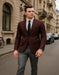 Mens Burgundy Paisley Tuxedo Blazer – Slim Fit Formal Dinner Jacket - Velvet Fabric - Slim Fitted
