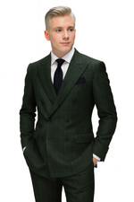 Mens Designer Classic Fit Double Breasted Hunter Green Wool Suit