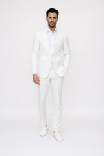 Linen Wedding Suit - Summer Fabric 2 Button Modern Fit No Pleated Pants Jacket + Pants in Color