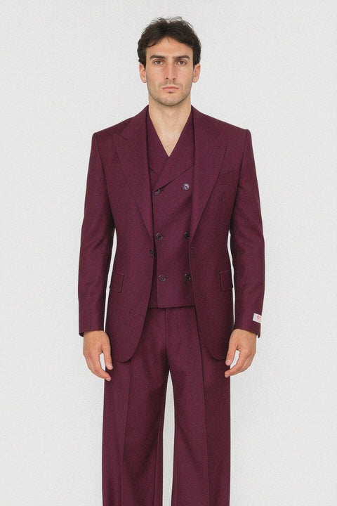Tiglio Rosso Suit - Classic Fit Athletic Cut 100% Wool Super 150s Italian Fabric Peak Lapel in Color Burgundy