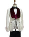 Maroon Prom Suit - Maroon Prom Tuxedo Suits - Maroon Wedding Tuxedo Mens Vested Designer Wide Velvet Shawl Tuxedo in Ivory Paisley