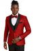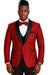 Red/Black Prom Tuxedo Suit - Red/Black Wedding Suit - Men's One Button Slim Fit Shiny Paisley Floral Vested Prom Tuxedo