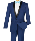 "Elegant Prom and Wedding Tuxedo: Vinci Men's 4-Button Blue Tuxedo with Mandarin and Banded Trim"