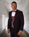 Mens One Button Shawl Tuxedo with Paisley Scoop Neck Vest in Burgundy