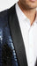 Men’s Navy Sequin Blazer – Navy Blue Sparkle Sequin Formal Blazer with Satin Lapel for Prom, Party and Evening Events