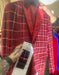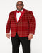 Men's Red Velvet Plaid Blazer with Satin Lapel – Designer Tartan Suit Jacket for Holidays and Events