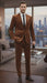 Mens Brown Velvet 2-Piece Suit – Luxury Slim Fit Formal Blazer and Pants Set in Rust Copper Color