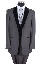 Designer Gray Prom Tuxedo - Grey Wedding Tuxedo With Black Velvet Lapel