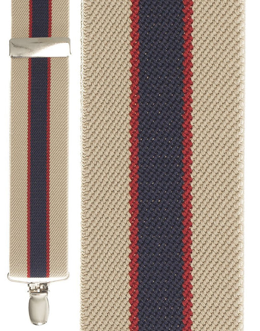 CardiCurrent price $26.95Original price $45.00Original price $45.00 - Original price $45.00Original price $45.00$26.95 - $26.95Current price $26.95| /Low stockPremium elastic suspenders to accompany your suit or tuxedo pants. Colors: Khaki Pattern: Striped Width: 1.3875" Length: 46" (Regular) M...