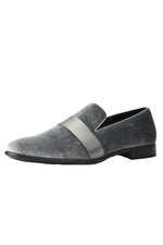 AmaliCurrent price $79.00Original price $125.00Original price $125.00 - Original price $125.00Original price $125.00$79.00 - $79.00Current price $79.00| /Low stockThe "Knight" Silver Tuxedo Shoes, designed by Amali, feature a solid velvet fabrication with satin detailing. Color: Silver Material: Velvet, S...