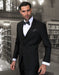 Mens 2 Button Skinny Vested Wool Suit in Black