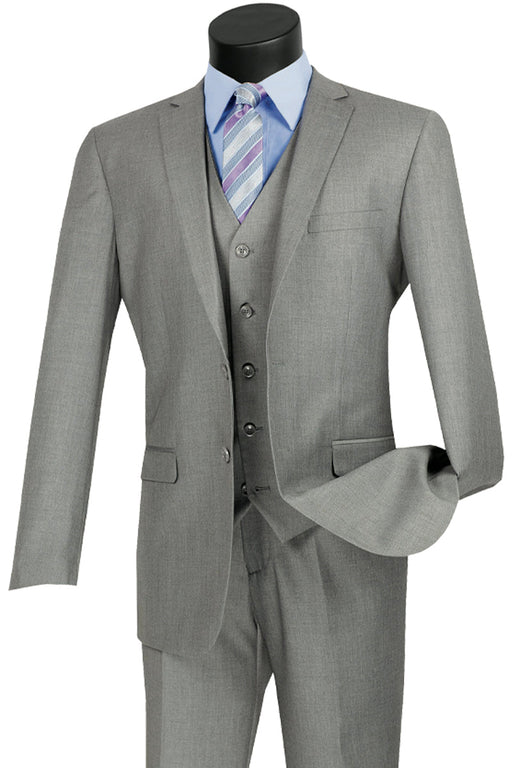 Mens 2 Button Modern Fit Vested Wool Suit in Grey