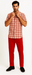 Mens Textured Plaid Walking Suit in Red/Off White by Dreams by Zacchi – 2 Piece Leisure Outfit with Matching Shirt and Pant-$99