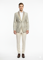 Men’s Champaign Ivory Jacquard Paisley Tuxedo Suit with Satin Shawl Lapel – Elegant Wedding and Prom Outfit By Rossiman
