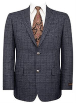 Cashmere and Charcoal Grey and Blue Blazer - Plaid Sport Coat - Windowpane Pattern