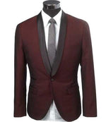 Cheap Priced Blazer Jacket For Men Online Slim Fit 1 Button Burgundy ~ Wine ~ Maroon Color Two Toned Black Lapel Satin Shawl Collar Dinner Jacket Looking! Burgundy Tuxedo
