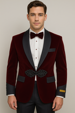 menssuitsatlanta$225.00Original price $225.00 - Original price $225.00Original price$225.00 - $225.00Current price $225.00| /One Button Single Breasted Shawl Lapel One Patch Chest Pocket Patch Two Pockets Color: Burgundy ~ Black SKU#JA3805