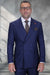 Men's Designer Double Breasted Wool Suit in indigo Blue Micro Plaid