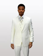 Statement Men's Off-White Solid Modern Fit 100% Wool Vested Suits