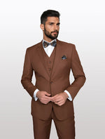 Statement Men's Solid Caramel Modern Fit 100% Wool Vested Suits