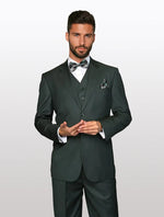 Statement Men's Solid Hunter Green 100% Wool Vested Suits (Modern Fit)