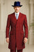 Mens Red Pinstripe Suit – Classic Long Coat Style with White Stripes