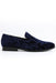 The Bryant navy shoes, designed by Amali, feature a tonal paisley velvet fabrication in a slip on design.
