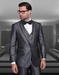 - Gray Prom Suit - Mens One Button Satin Trim Notch Prom Tuxedo in Shiny Grey Sharkskin