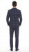 Men’s Navy Blue Windowpane Check Three Piece Suit – Modern Plaid Formal Vested Suit