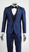 Men’s Shiny Sharkskin Saphire Royal Blue Tuxedo 3 Piece Suit with Black Shawl Lapel | Formal Wedding Prom Suit Shiny Fabric