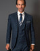 Mens 2 Button Vested Modern Fit Wool Suit in Navy Plaid