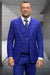Men's Designer Wool Suit with Double Breasted Vest in Cobalt Blue Windowpane Plaid